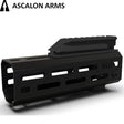 Käsisuoja on valmistettu ruostumattomasta teräksestä, ja siinä on useita M-Lok-paikkoja sekä Picatinny-kisko ylä- ja alaosassa.