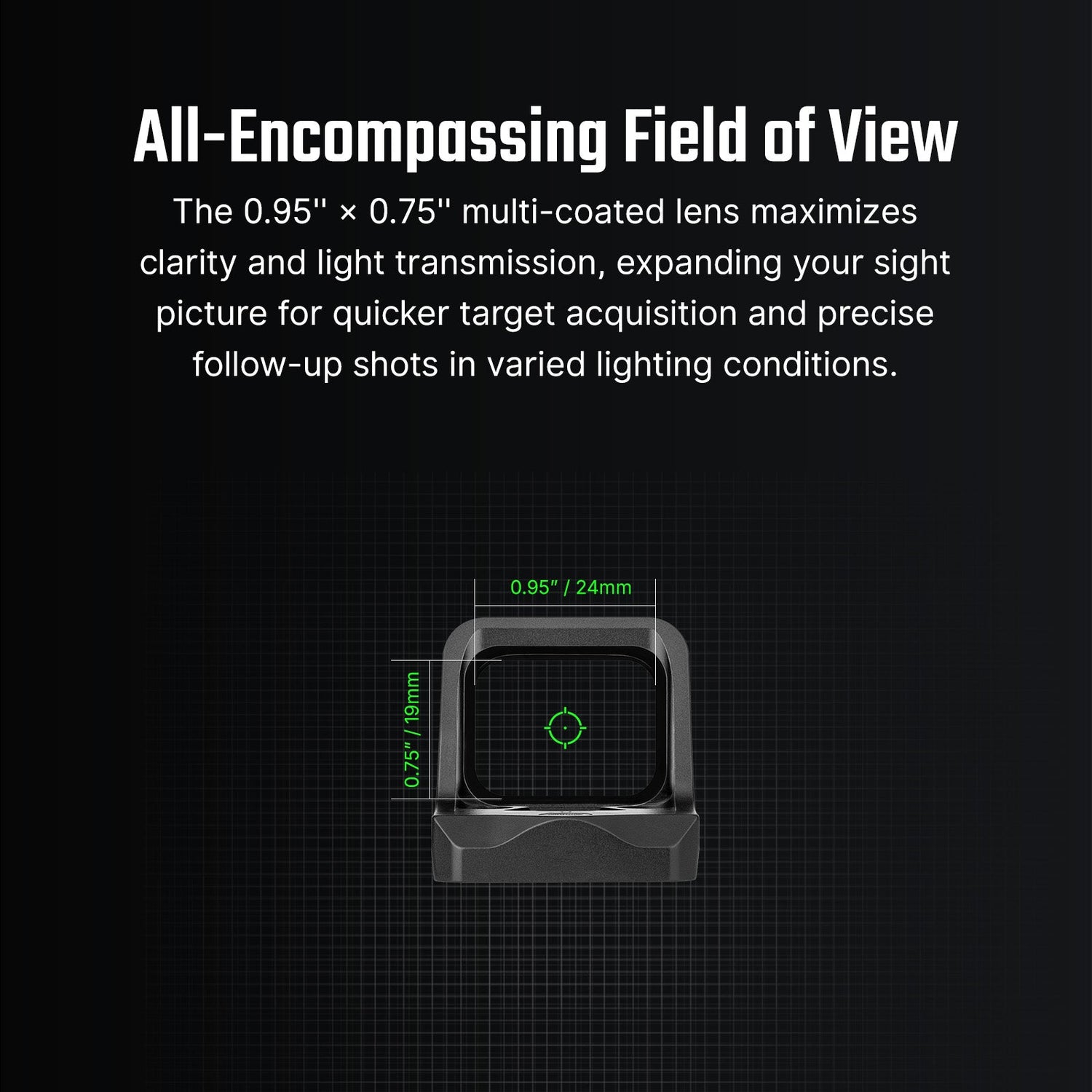 Tähtäin käyttää monikerrospinnoitettua linssiä, joka parantaa valonläpäisyä ja vähentää heijastuksia. Käytännössä tämä tarkoittaa kirkkaampaa tähtäinkuvaa, parempaa tarkkuutta ja nopeampaa maalin hankintaa erilaisissa valaistusolosuhteissa ammuttaessa.