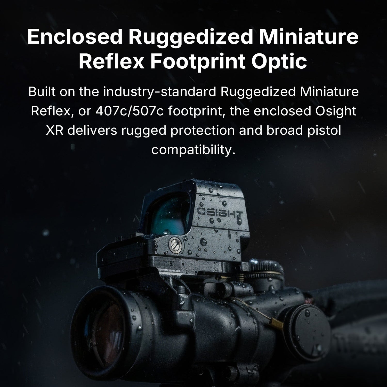 Osight XR on suljettu punapistetähtäin, joka on suunniteltu todelliseen käyttöön, ei vain teknisiin tietoihin. Se käyttää Trijicon RMR footprint -standardia, joten se sopii moniin täysikokoisiin ja kompakteihin pistooleihin, jotka on jyrsitty RMR:lle tai käyttävät RMR-yhteensopivaa adapterilevyä. Suljettu rakenne suojaa tähtäintä paremmin vedeltä, pölyltä, nukalta ja arjen lialta.